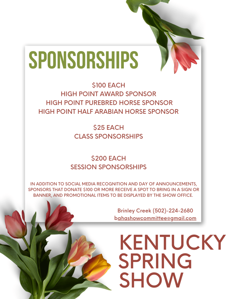 With an array of open all breed, Arabian, Saddlebred, Academy and more – there is something for everyone! This is a great show to kick off the spring show season, get the youngsters in the show ring, and earn some qualifications! Earn your regional/national qualifications, grab those KAHABA and KBIF points, and take a turn to qualify for Louisville!