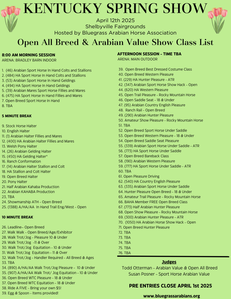 SHOW SECRETARY: Jennifer Tucker 502.257.2868 showeventservices@gmail.com